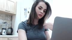 Uma vadia trans não recusa quando seu homem lhe pede para mostrar suas grandes mamas e se masturbar na frente da câmera. Cuidado com a vadia batendo a piça