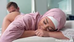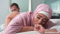 Ele está com uma amiga da universidade hoje, vai excitá-la, levantar seu hijab para acariciar seus seios e lamber sua buceta.