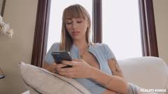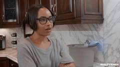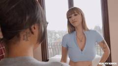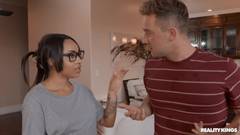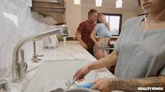 A loira Angel vai excitar o namorado de sua colega de quarto, fazer um boquete nele enquanto a morena lava a louça e depois transar com ele no quarto.