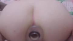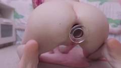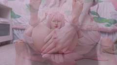 Uma garota com peruca cor-de-rosa se masturba com muitos brinquedos, fazendo DP anal e até se empalando num grande dildo.