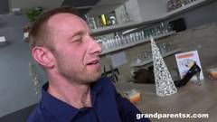 A velha malandra trouxe esse cara até a casa dela e começou a chupar a pica dele pedindo à neta que viesse e se juntasse a ela para uma ménage à trois