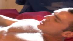 Steve Hunt é esmagado no fundo desta cena quente pelo sensual Michael Lucas. Ambos vão descarregar seu esperma no pinto de Michael.