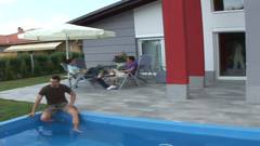 Mario McGabe e Sanjoy estão muito excitados, então eles começam a chupar pinto junto à piscina e depois se fodem um ao outro dentro.