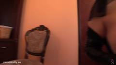 Samanta Lily se veste como uma freira sexy e tira suas roupas justas para mostrar seus peitos grandes.