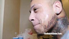 Ela tem um belo traseiro grosso, agindo como uma vadia e exibindo a bunda e os peitos grandes para seduzir o cara e receber uma grande carga.