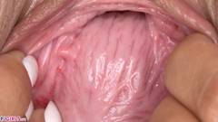 A morena sexy sente muito tesão em sua lingerie, tocando a si mesma e testando sua buceta antes de começar a abri-la para vê-la por dentro