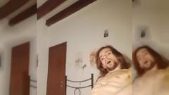 Um garoto bonito e sexy e um anjinho magricela de cabelo magro se masturba na cama até se dar um enorme ejaculação final...