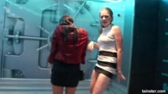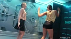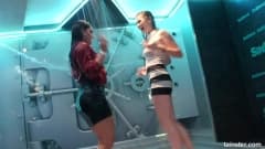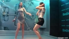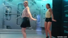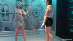 Estas jovens estão se divertindo muito entrando no chuveiro numa câmara chuvosa, sempre trocando de roupa. Elas estão entusiasmadas e ansiosas por sexo!