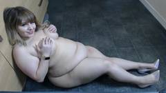 Uma loira BBw com um grande rabo e tetas perfuradas se masturbando
