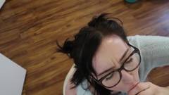 Esta boazona de óculos nos mostrará a suas habilidades orais ao fazer um broche com um dildo enquanto ela se ejacula.