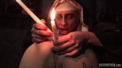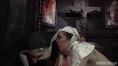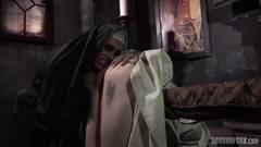 Ela conjurou a freira assustadora trazendo de volta à vida e agora ela tem que pagar pelo que ela fez com sua buceta sendo usada e brincando com o fantasma