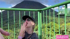 Loira pequena nas férias é usada em público por um homem excitado para ejacular em seu traseiro e colocar seu pinto de volta em sua buceta nua.