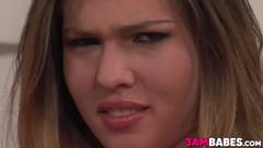 A doce garota gosta de foder dois caras, um deles negro, e enfiar seus galos gordos nos buracos dela.