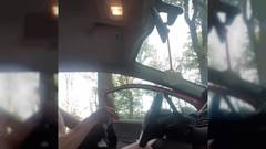 Eu me dispo e uma vez nuo coloco as minhas coisas no carro para um pequeno passeio na floresta para os voyeurs. exposição arriscada