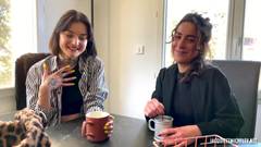 Esta cena é realmente quente! Veja como uma lésbica emo convence a sua amante a brincar não só consigo mesma, mas com um cara que a fode por trás!