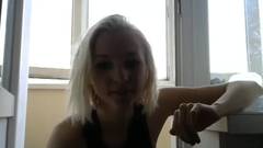 Esta garota loira não consegue controlar seu desejo sexual, então ela se masturba sozinha em frente à câmera.