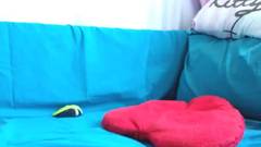 Uma jovem vadia com peitos vermelhos e uma xoxota ligeiramente peluda se filma em pov em uma cena de masturbação e introduzindo os dedos na sua xoxota.
