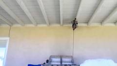 Garota punk com cabelo roxo e se masturbando sozinha em um cabo