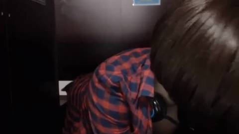 Uma jovem asiática com peitos grandes tem uma máscara no rosto, está no provador de uma loja e, em vez de medir suas roupas, começa a se tocar.