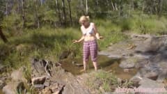 Esta adolescente loira com seios pequenos e firmes é uma safada exibicionista e hoje ela vai ficar nua no meio da natureza...