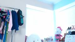A amante morena se masturba vigorosamente em sua buceta nua e é penetrada com seu grande vibrador.
