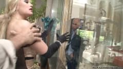 Aqui está uma cena violenta com uma loira sexy em meias que vai ficar brutalmente fodida por dois caras ao mesmo tempo.