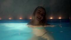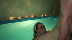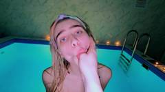 Essa vagabunda amadora fica com tesão na piscina, então ela chupa o pau dele e se masturba por trás, no estilo cachorrinho.