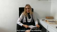 Uma jovem loira bonita espera por uma prova na sala de aula, mas o professor, ao ver seus peitos de novinha e sua boceta molhada, prefere transar com ela