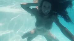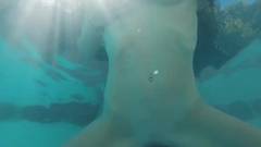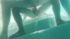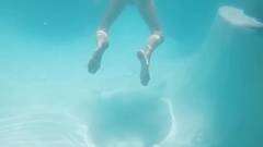 A bela milf quer experimentar sexo na piscina com a gopro embaixo d'água, ela chupa embaixo d'água e é penetrada.