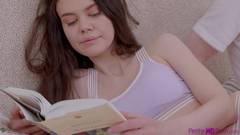 Eu dedilho a meia-irmã enquanto ela lê calmamente em sua calcinha. Em seguida, ela chupa meu pênis e isso se transforma em uma briga entre mim e ela.