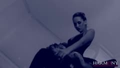Esta bela bailarina parece ter esquecido a calcinha! Quando ela abre as pernas um homem chega a transa com ela.