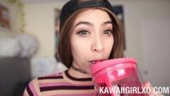 Esta linda novinha está prestes a se masturbar pela primeira vez com um grande vibrador solo, incluindo urina