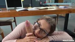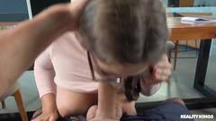 Essa linda garota deve ter uma nota ruim para compensar o fato de estar transando na mesa do professor!