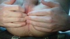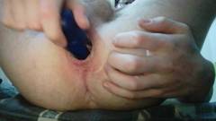 Ele abre seu buraco do cu com grandes dildos