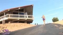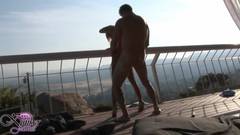 Kimber, uma bela loira madura, juntou-se ao seu novo namorado na casa dele e ficou excitada ao ver a varanda para ficar nua e fazer sexo lá