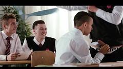 Ele estava no paraíso dos pênis, cercado por todos os seus colegas de classe e pelo professor, e ficou excitado chupando o pau de todos eles