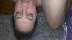 Ele fez com que a garota se deitasse enquanto ele estava na hora, chupando e esfregando o pau, sentindo-se tão bem até descarregar nos peitos dela
