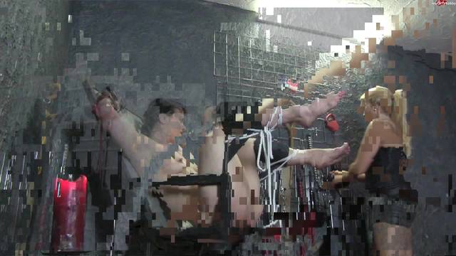 Essas duas lésbicas europeias participam de uma sessão de BDSM. Ela prende a amiga e a chicoteia enquanto faz fisting anal.