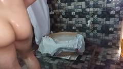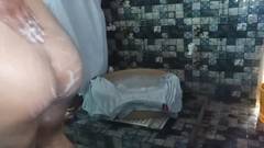 Homem gostoso com bunda grande e pau duro vai para o chuveiro e usa sabonete para se masturbar até gozar ao vivo na câmera do seu celular