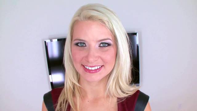 Loira sexy com um belo sorriso, feliz por estar aqui para satisfazer suas necessidades de chupar um pau, ser fodida e engolir o esperma dele