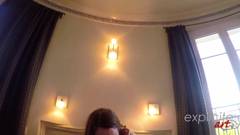 A jovem francesa Margot Rousseau espera por seu amante se masturbando na cama e depois chupa o pau dele e o fode, assista!