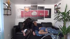 Essa morena madura de bunda grande, usando meias e lingerie sexy, é profundamente penetrada por trás, no estilo cachorrinho, depois de um boquete.