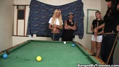 Durante um jogo de bilhar em que transexuais são fodidos em grupo
