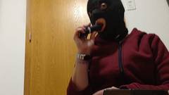 Garota mascarada fazendo um show ao vivo onde ela chupa um vibrador para seu namorado e foi vazado, mostrando como ela adora chupá-lo