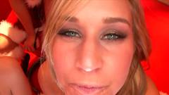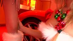 Essas gostosas em trajes de Papai Noel estão com muito tesão e mal podem esperar para pegar o pau desse sortudo e chupá-lo!