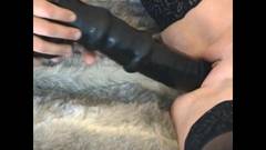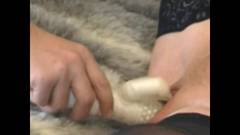 Ela adora ser submissa, usar uma máscara sexual e chupar muito bem o pau de seu mestre, sendo recompensada por um vibrador gigante dentro de sua buceta.