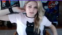 Assista a esse vídeo amador de uma linda transexual loira se masturbando na frente da câmera. Não perca o pau enorme dele!