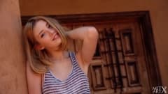 Essa jovem loira de peitos pequenos, Lena Anderson, mostra a masturbação sensual e gentil que faz a si mesma com os dedos. Veja como ela lambe seu suco!