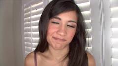 Uma morena doce e sexy parece tão tímida no início, mas ela só veio aqui para se divertir chupando um pau e sentindo-o dentro dela