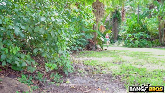 Esta linda teen loira bem formada se faz foder de pé de quatro e de quatro no bosque antes da corrida facial